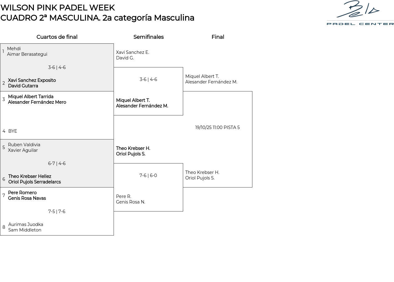 Cuadro de consolación 2a categoría Masculina