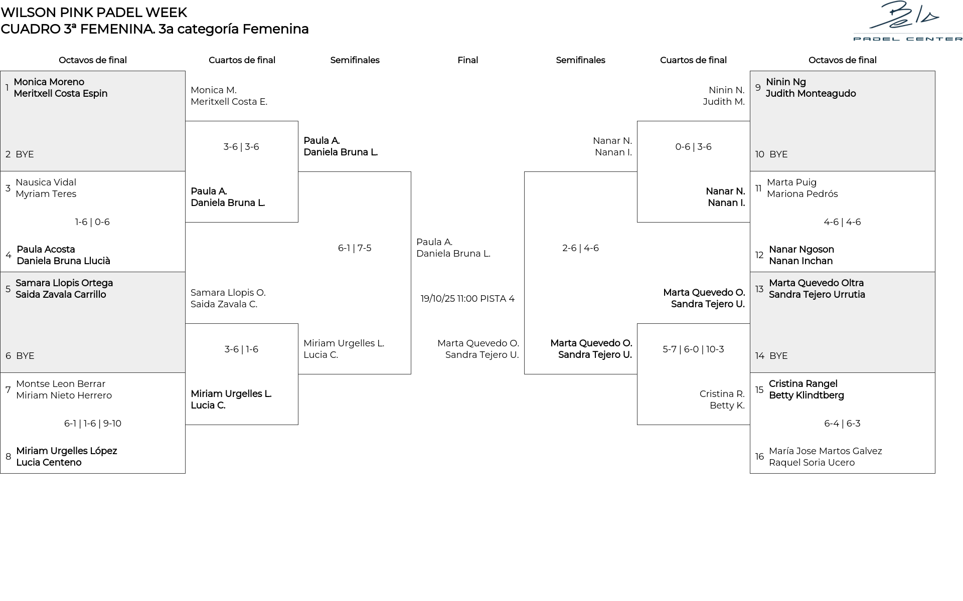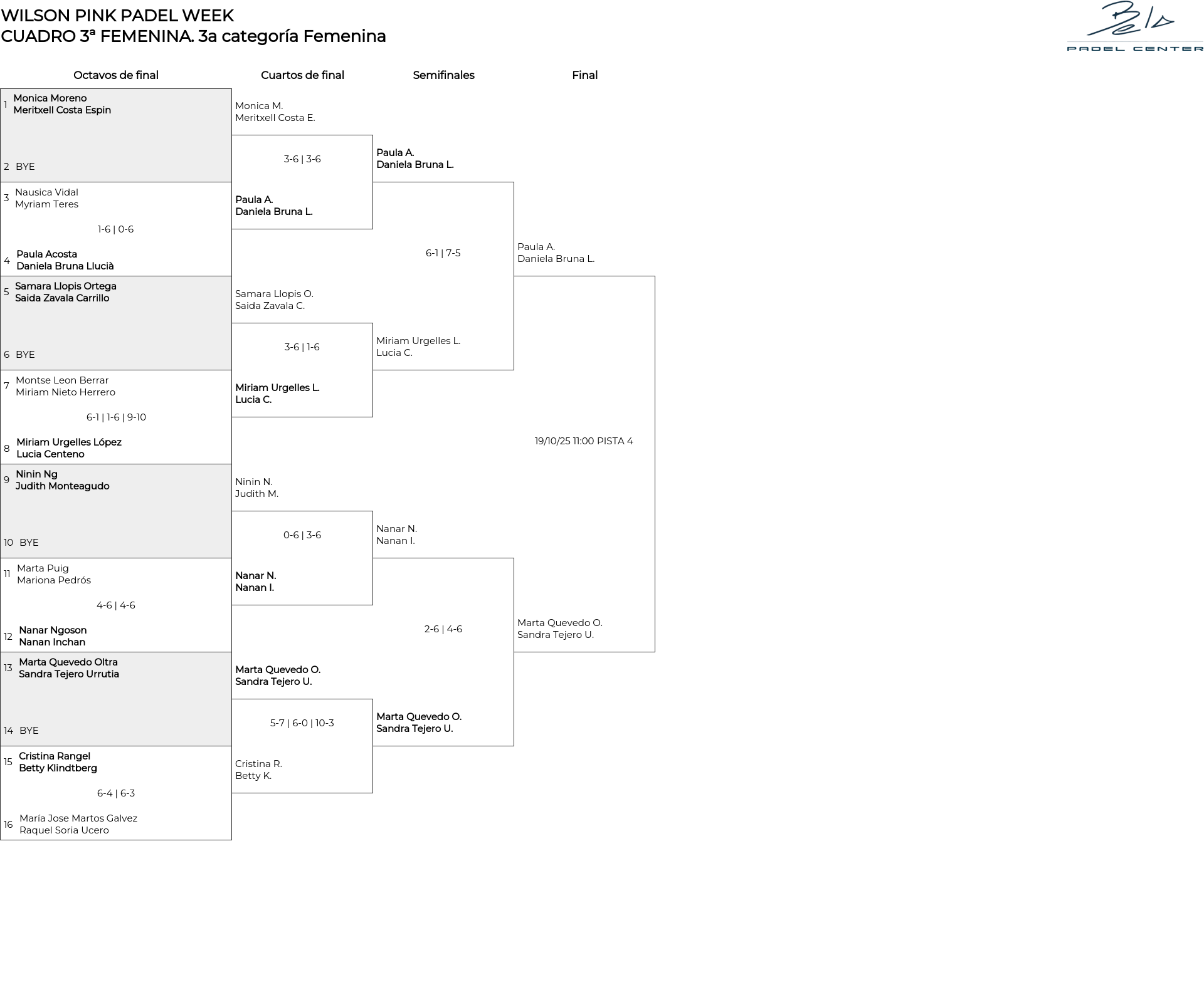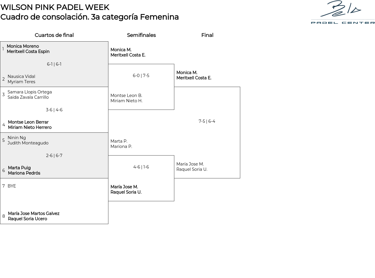 Cuadro de consolación 3a categoría Femenina