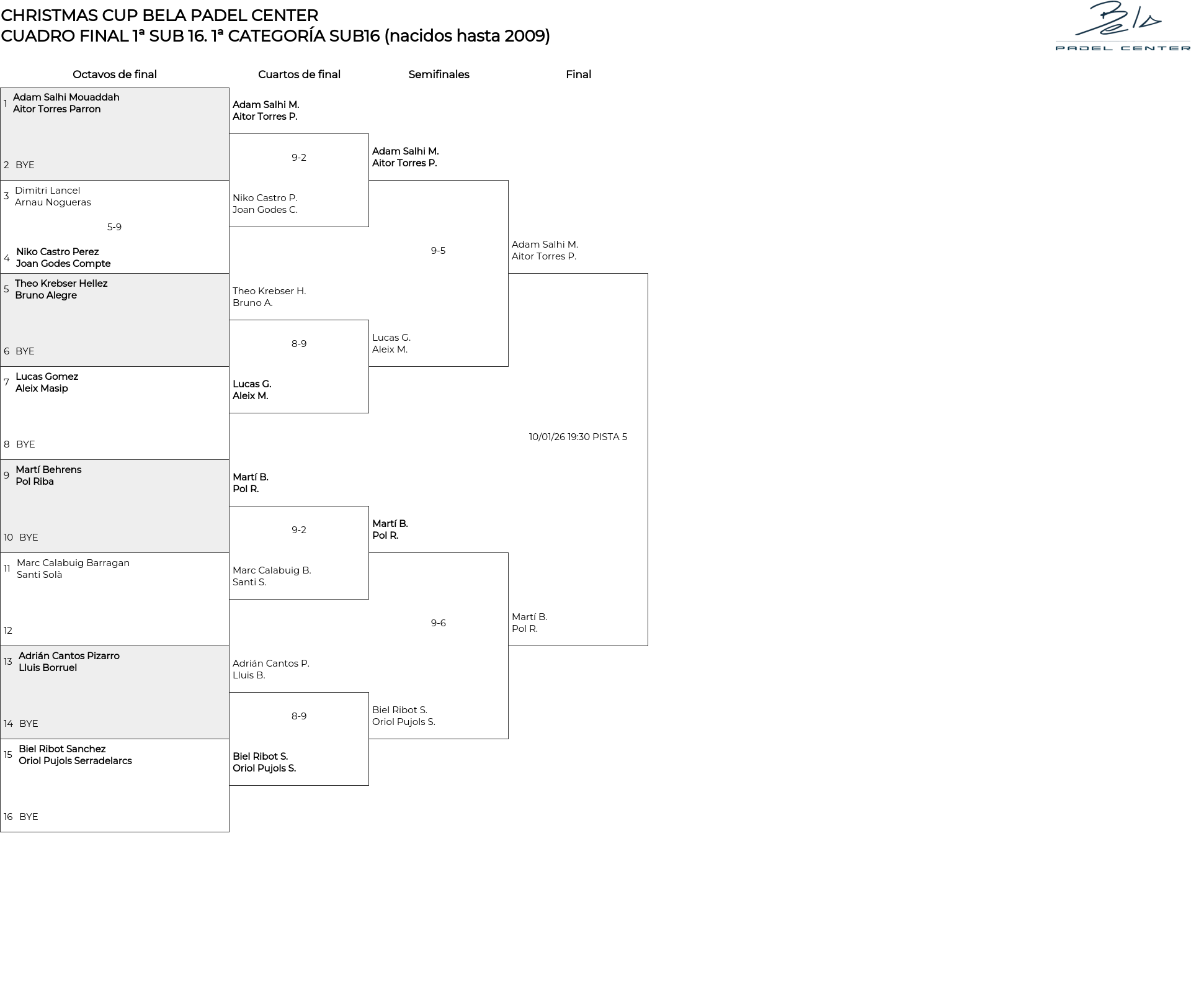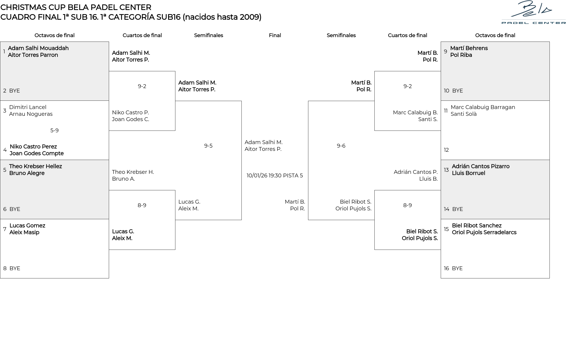 Cuadro principal 1ª CATEGORÍA SUB16 (nacidos hasta 2009)